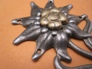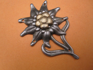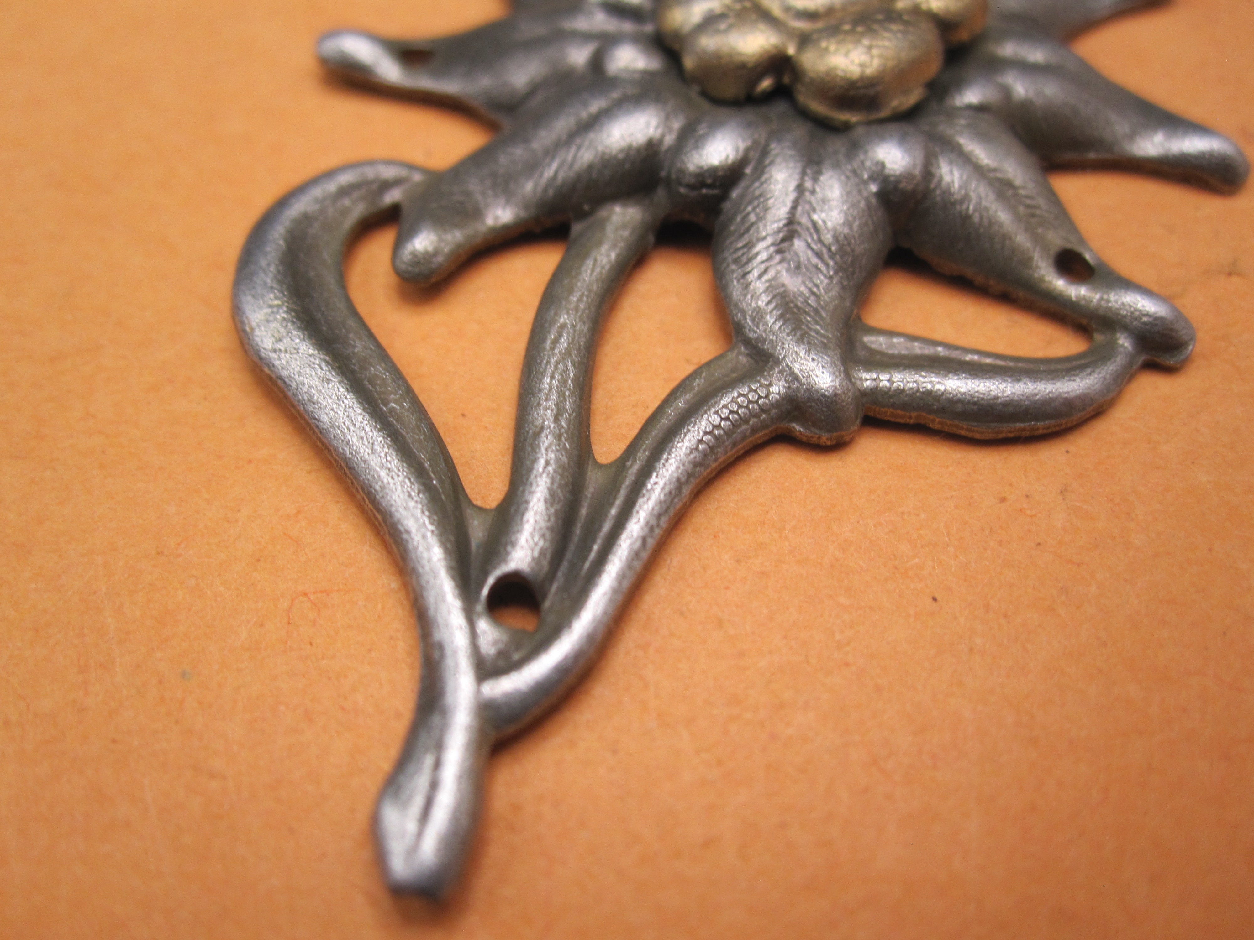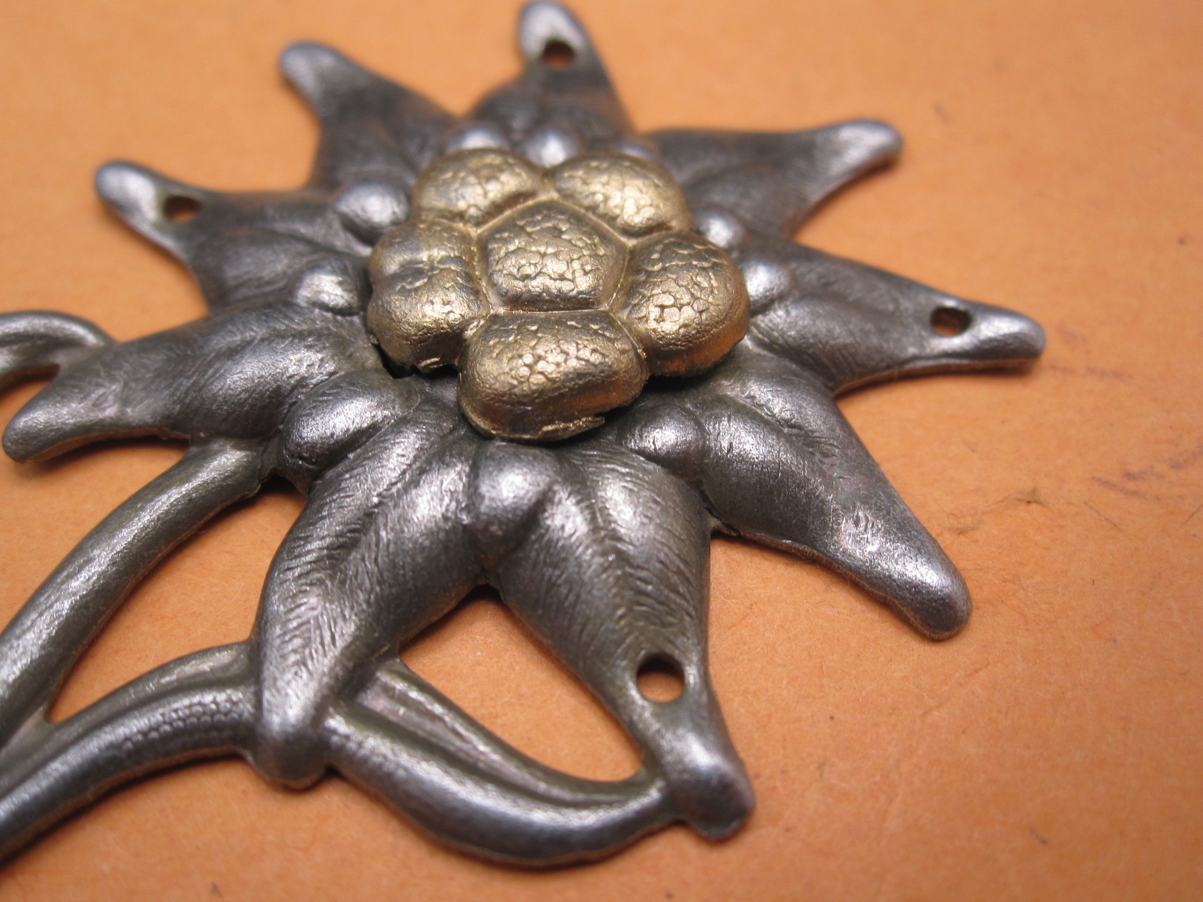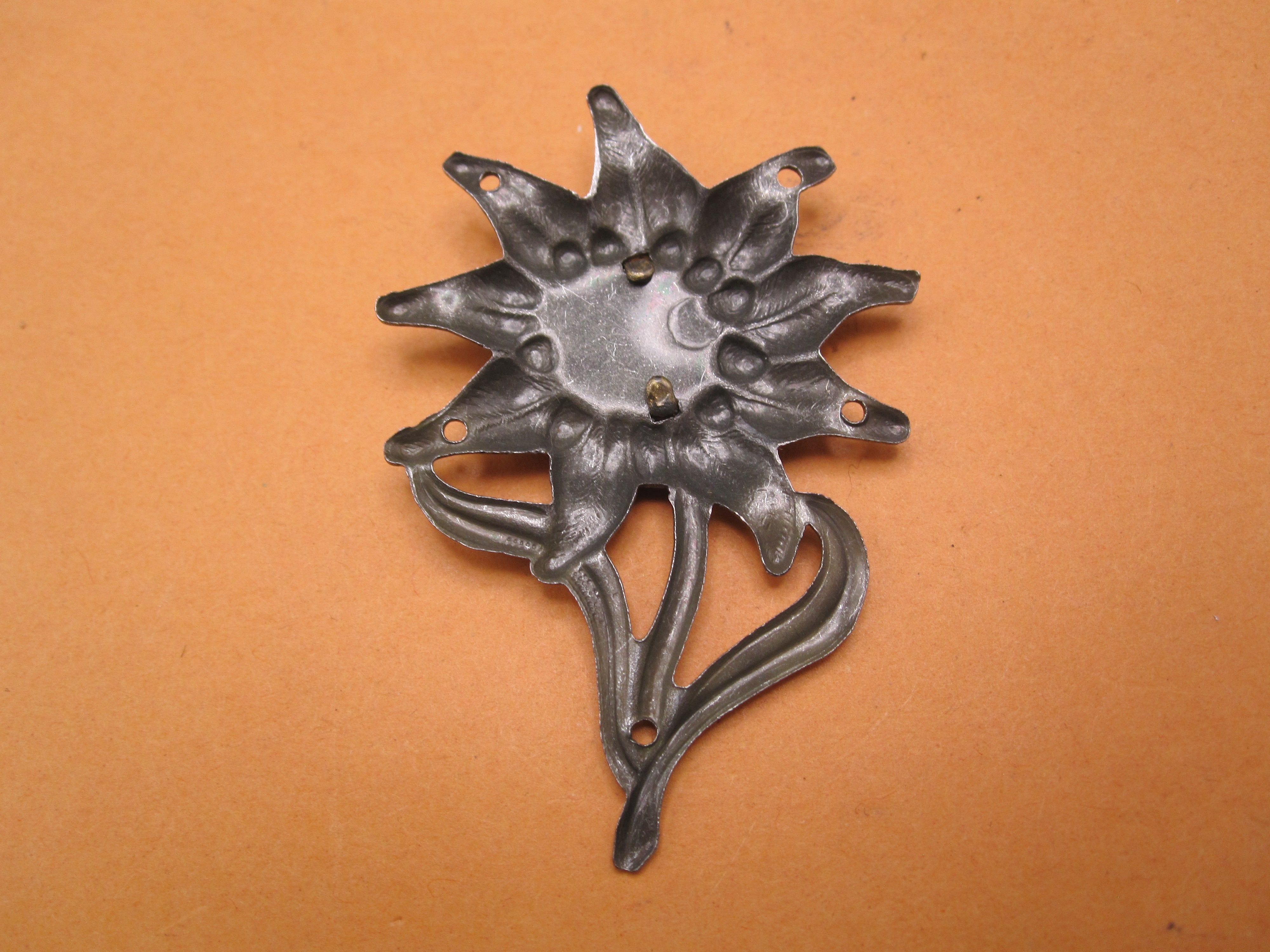 UNgetragenes zweiteiliges Exemplar aus magnetischem Eisenblech, mit 2 Löchern zum Annähen an die Mütze.