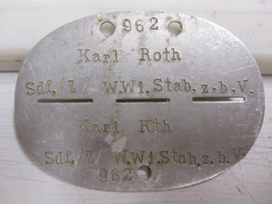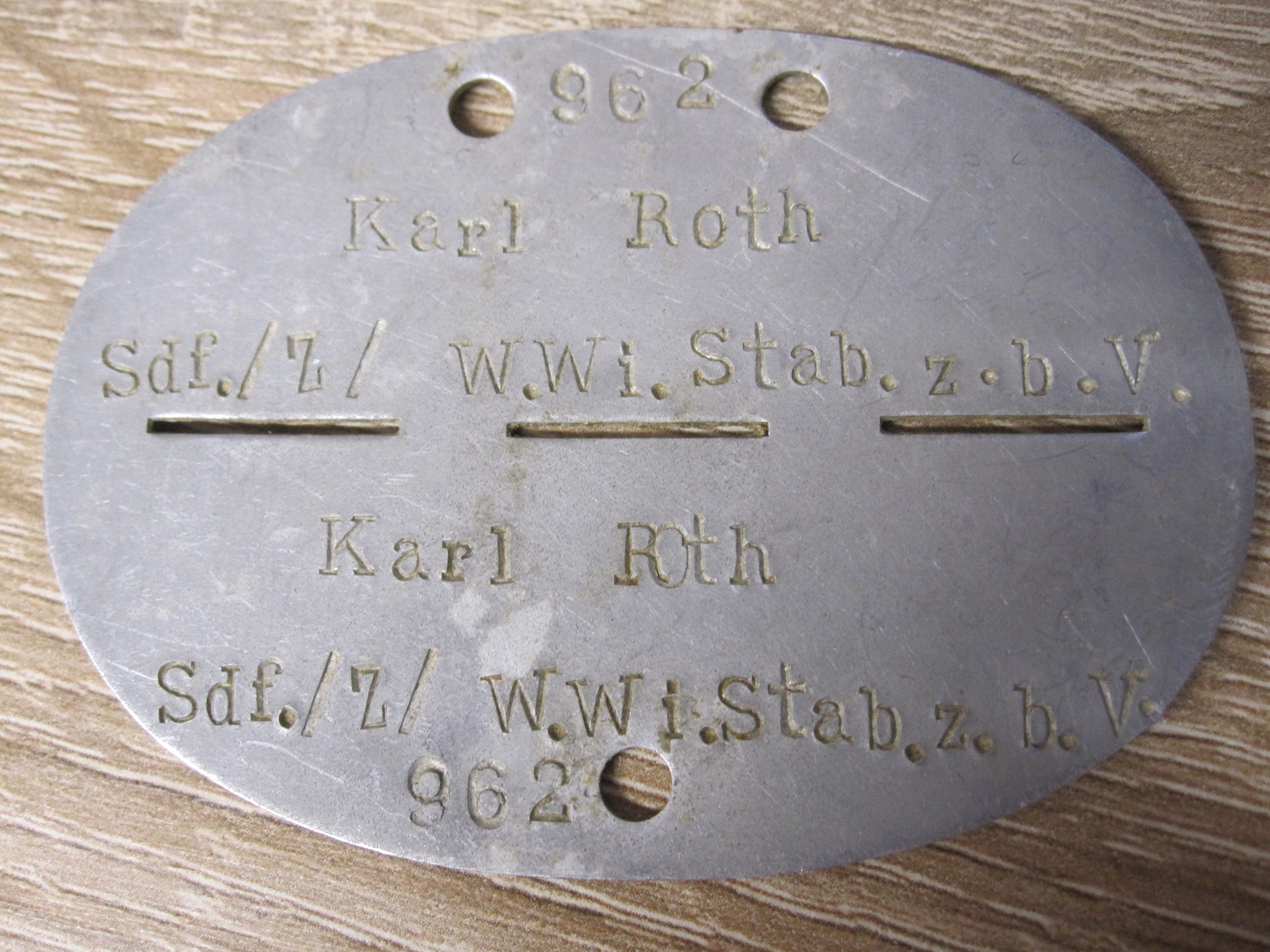 " Karl Roth Sdf. /Z/W.Wi.Stab z.b.V. Personalnummer: 962 " Blutgruppe: ?