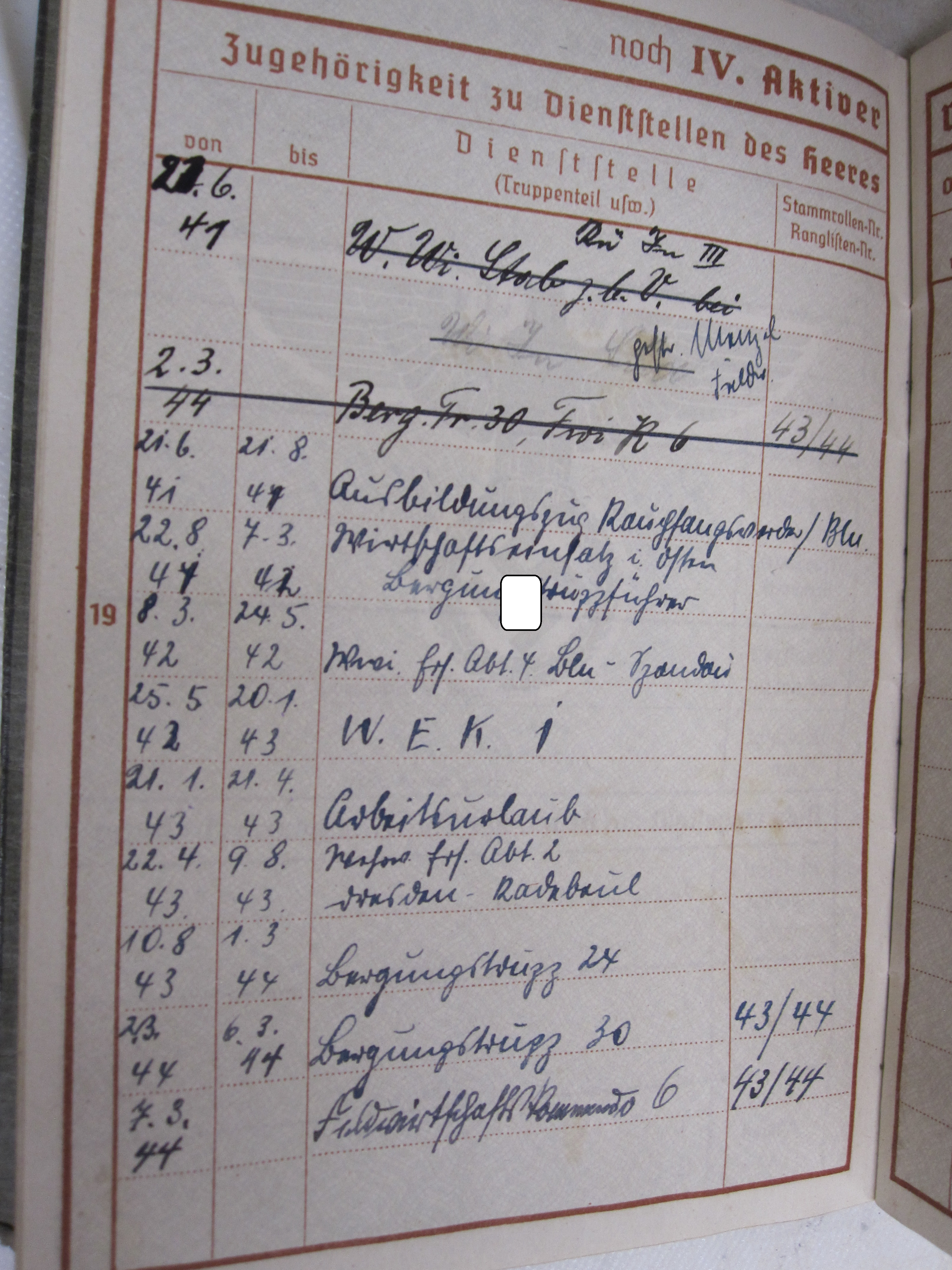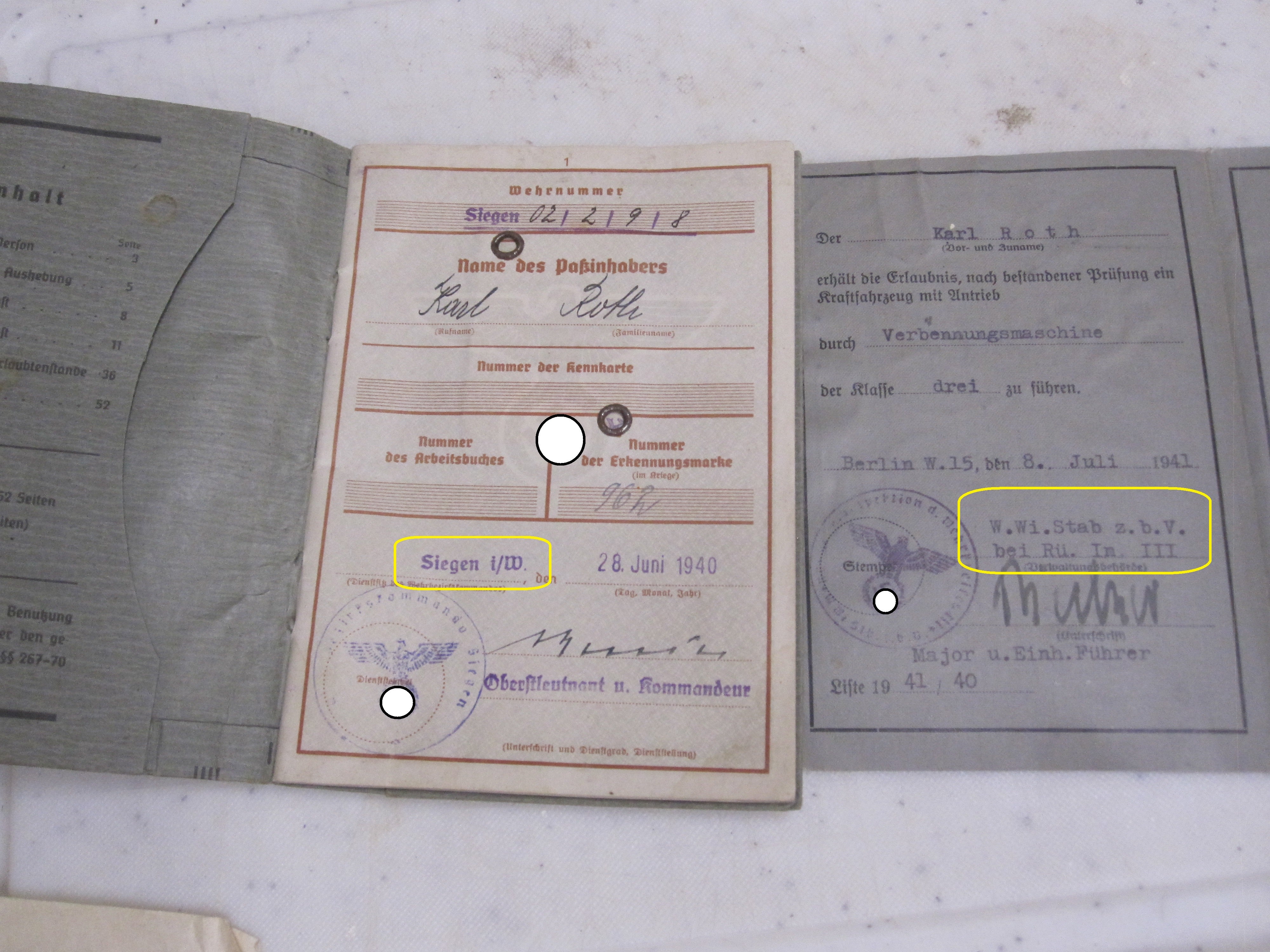 Zunächst als Sonderführer (1941) im Wehr Wirtschafts Stab zur besonderen Verwendung z.b.V. / Bergungstrupp 24 & 30 , Feldwirtschaftskommando 6