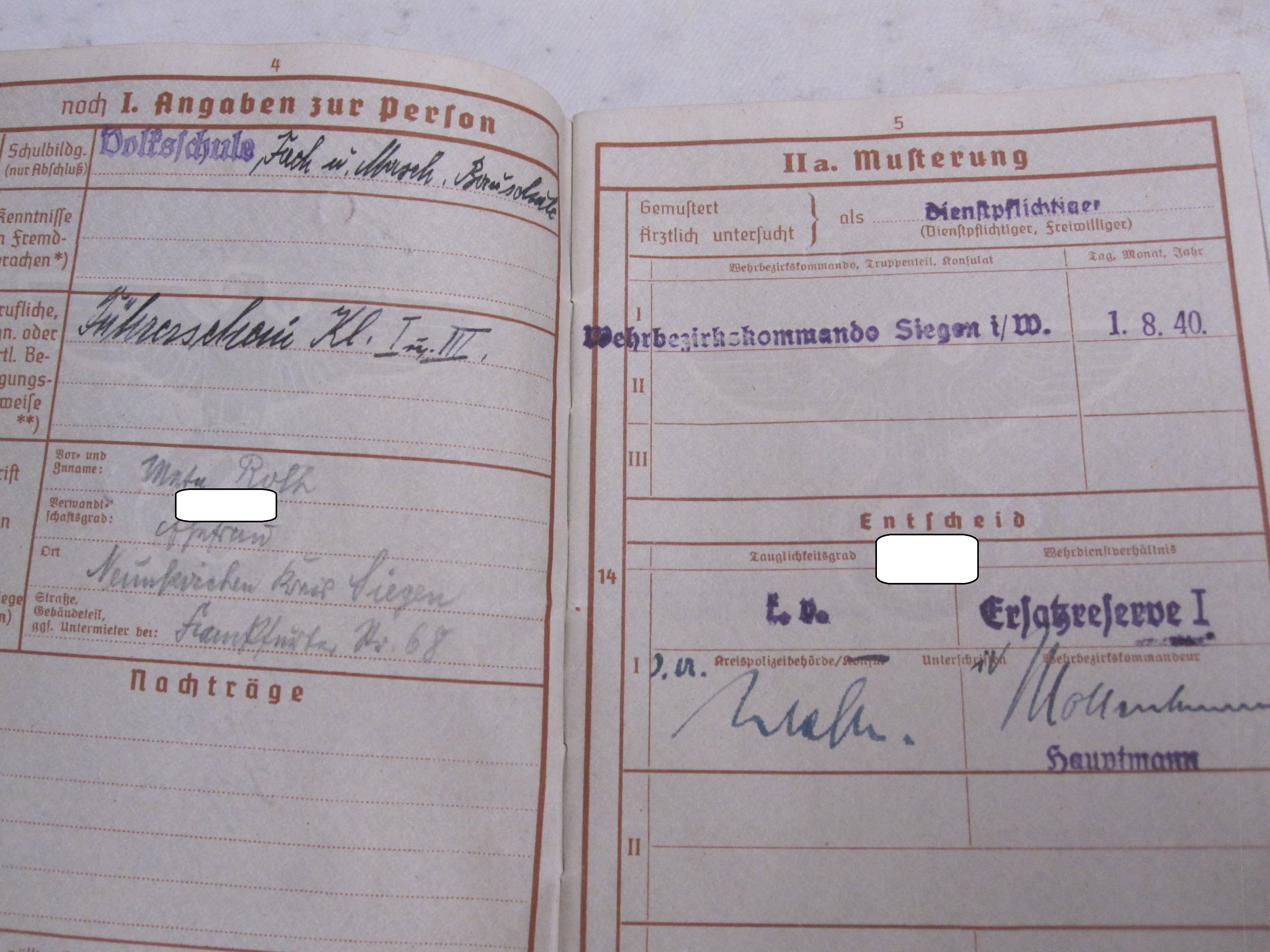 -Wehrpass. Ausgestellt Siegen in W. in 1940