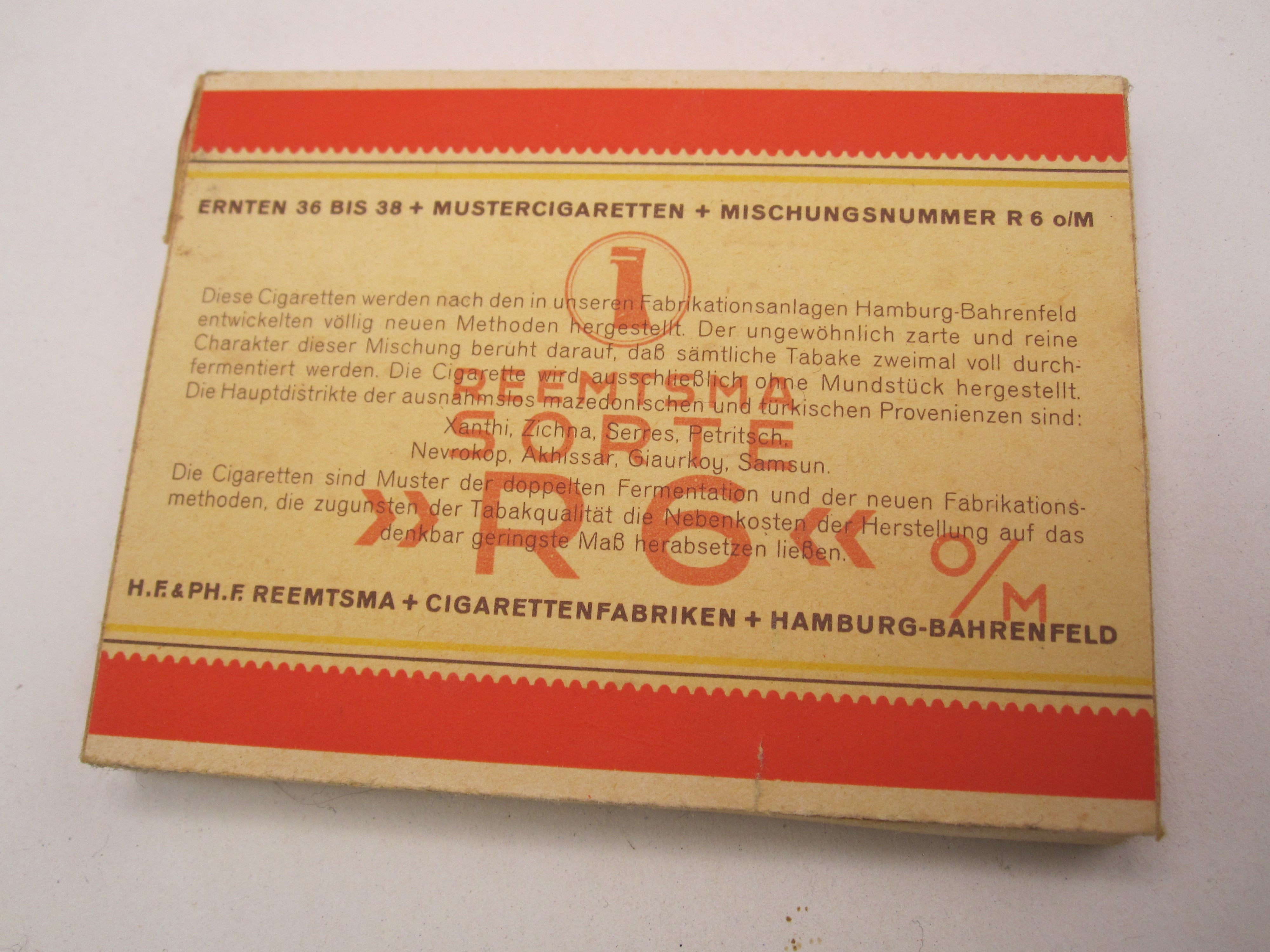 Hersteller: H.F. & PH.F. Reemtsma Cigarettenfabrik in Hamburg Bahrenfeld