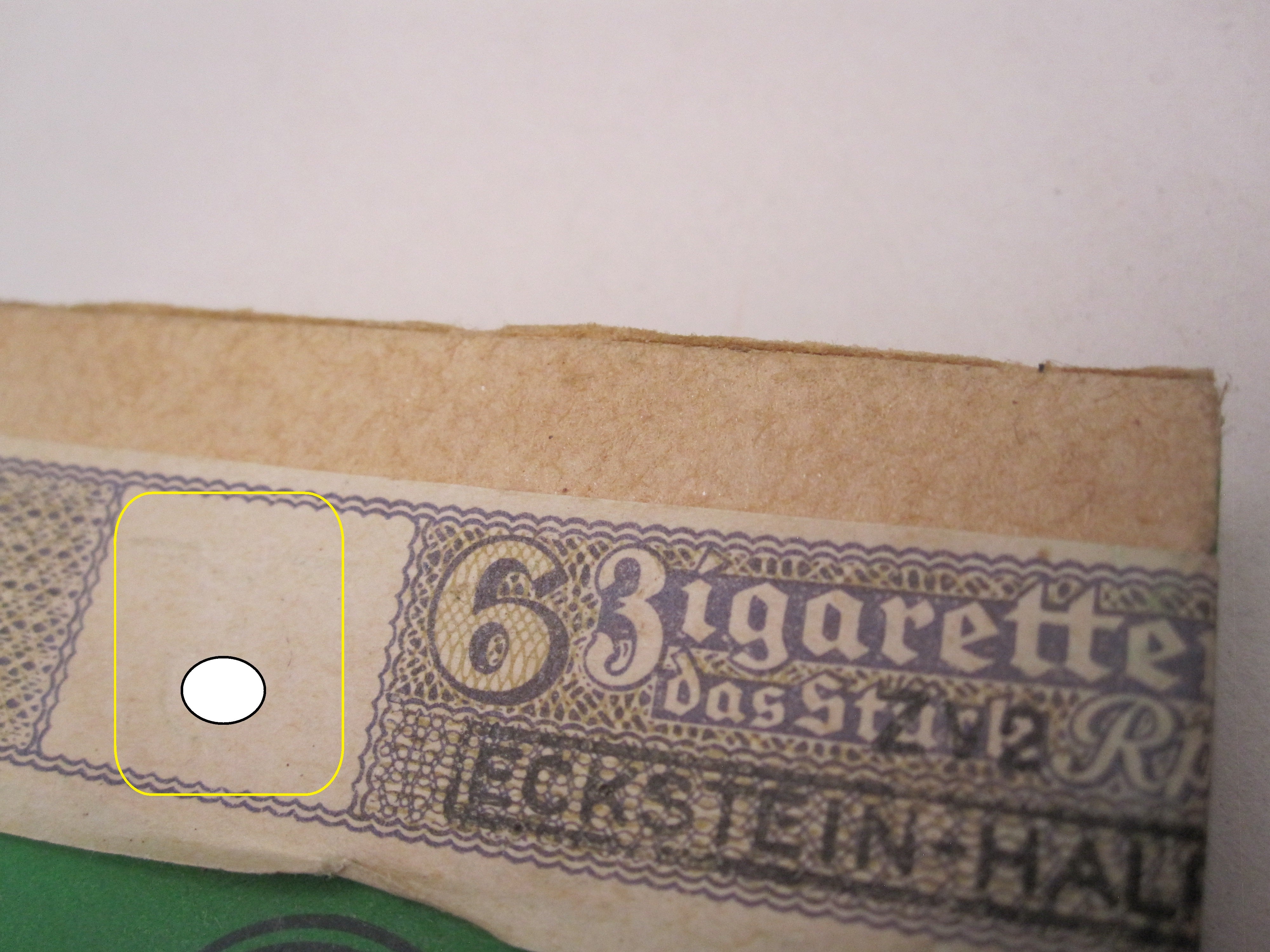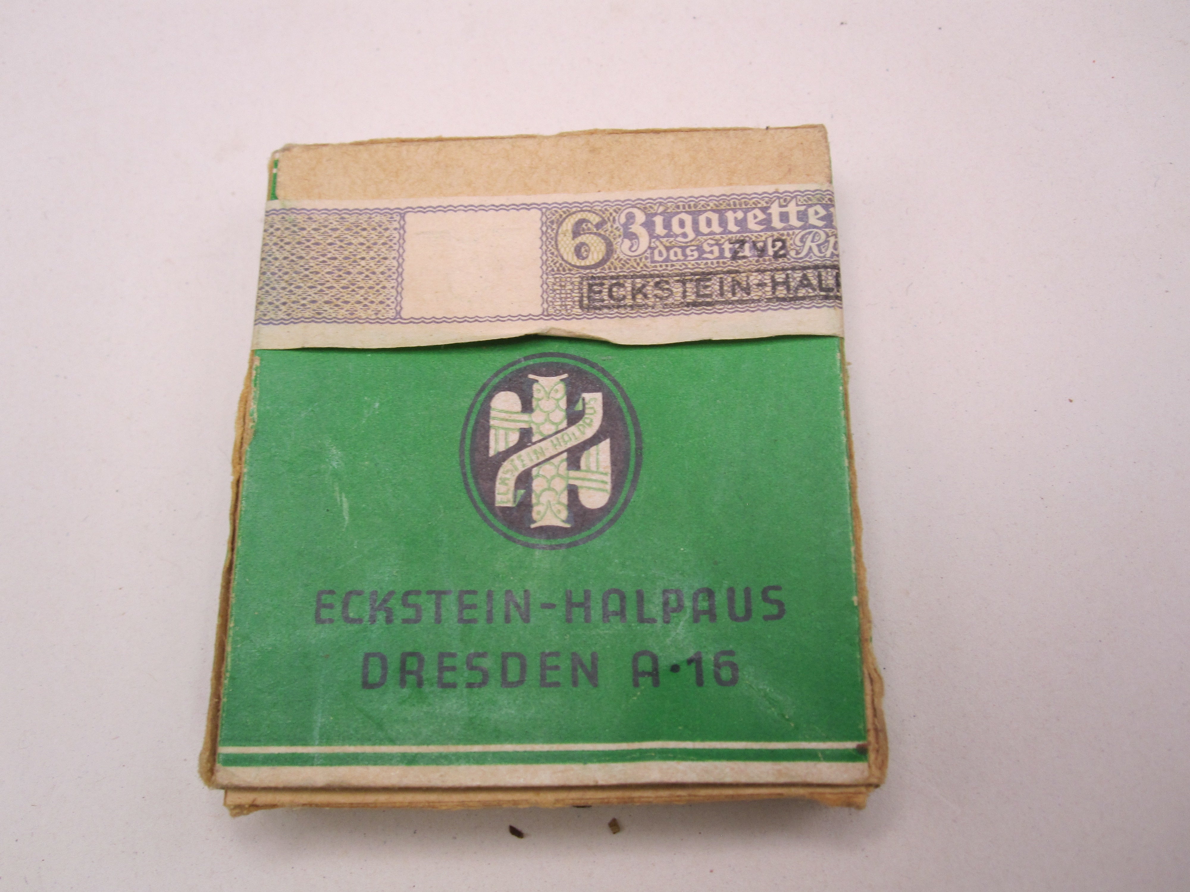 Packung für 6 Cigaretten mit der alten Steuerbanderole, mit Hoheitsadler.