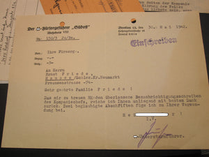 - Übersendungsschreiben des SS-Fürsorgeoffizier " Südost " ausgestellt Breslau 30. Mai 1942.