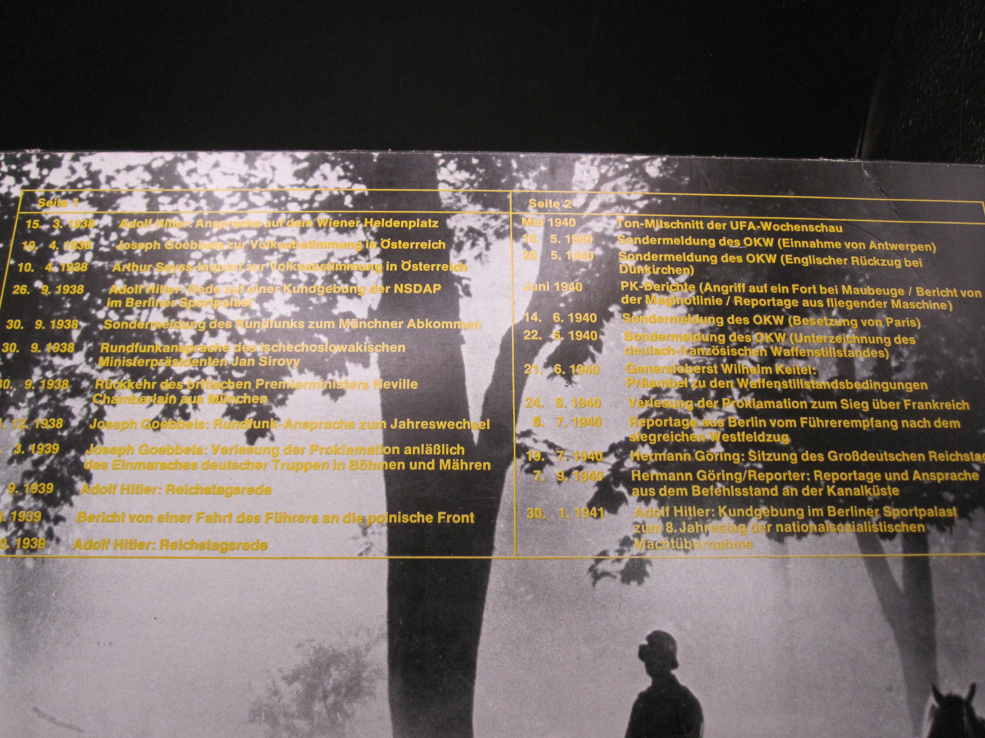 Diese Schallplatte wird von uns nur zur staatsbürgerlichen Aufklärung und zur Abwehr verfassungswidriger Bestrebungen angeboten (§86 StGB)