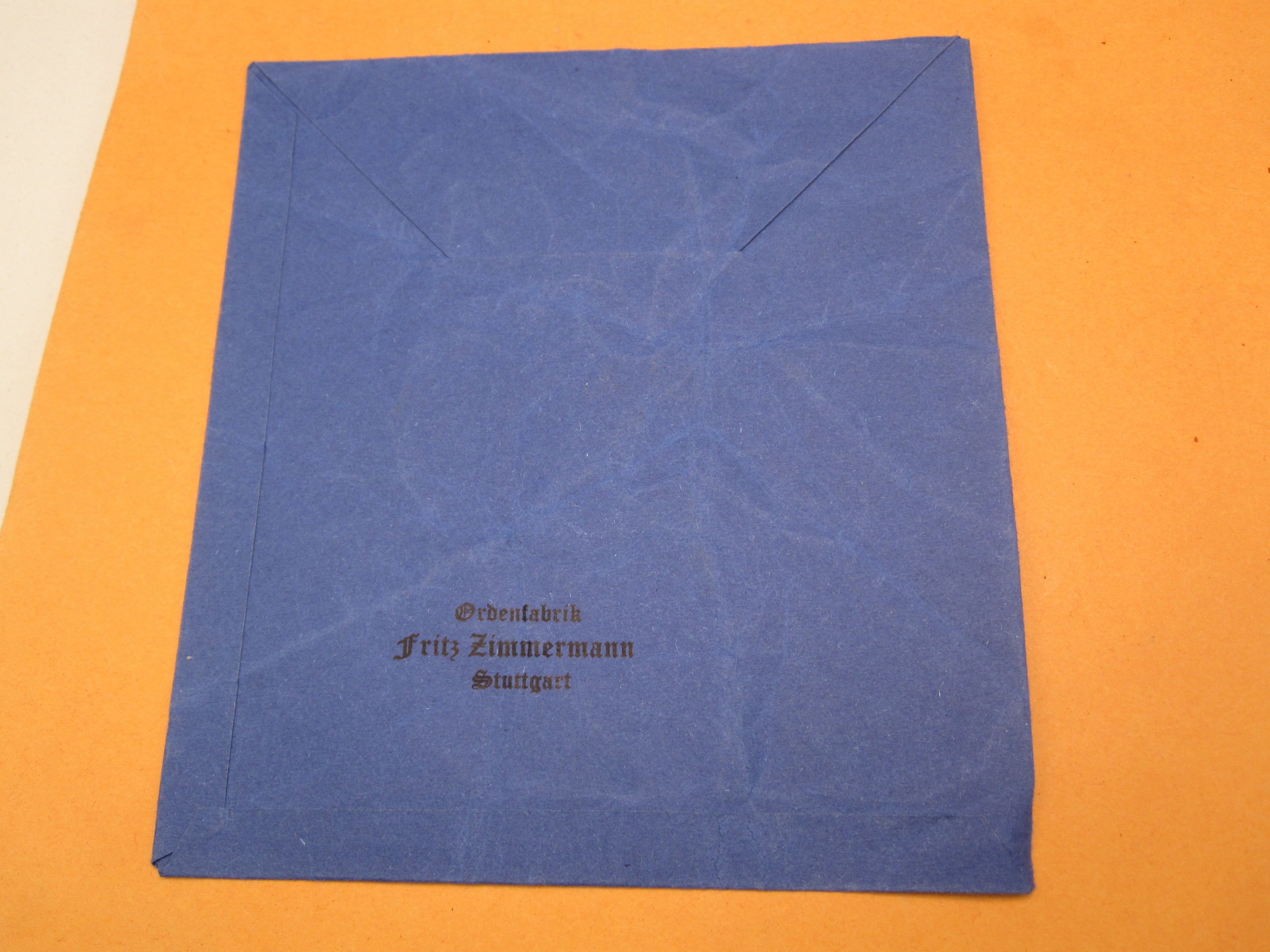 Verleihungstüte mit Herstelleraufdruck: " Ordensfabrik Fritz Zimmermann in Stuttgart "