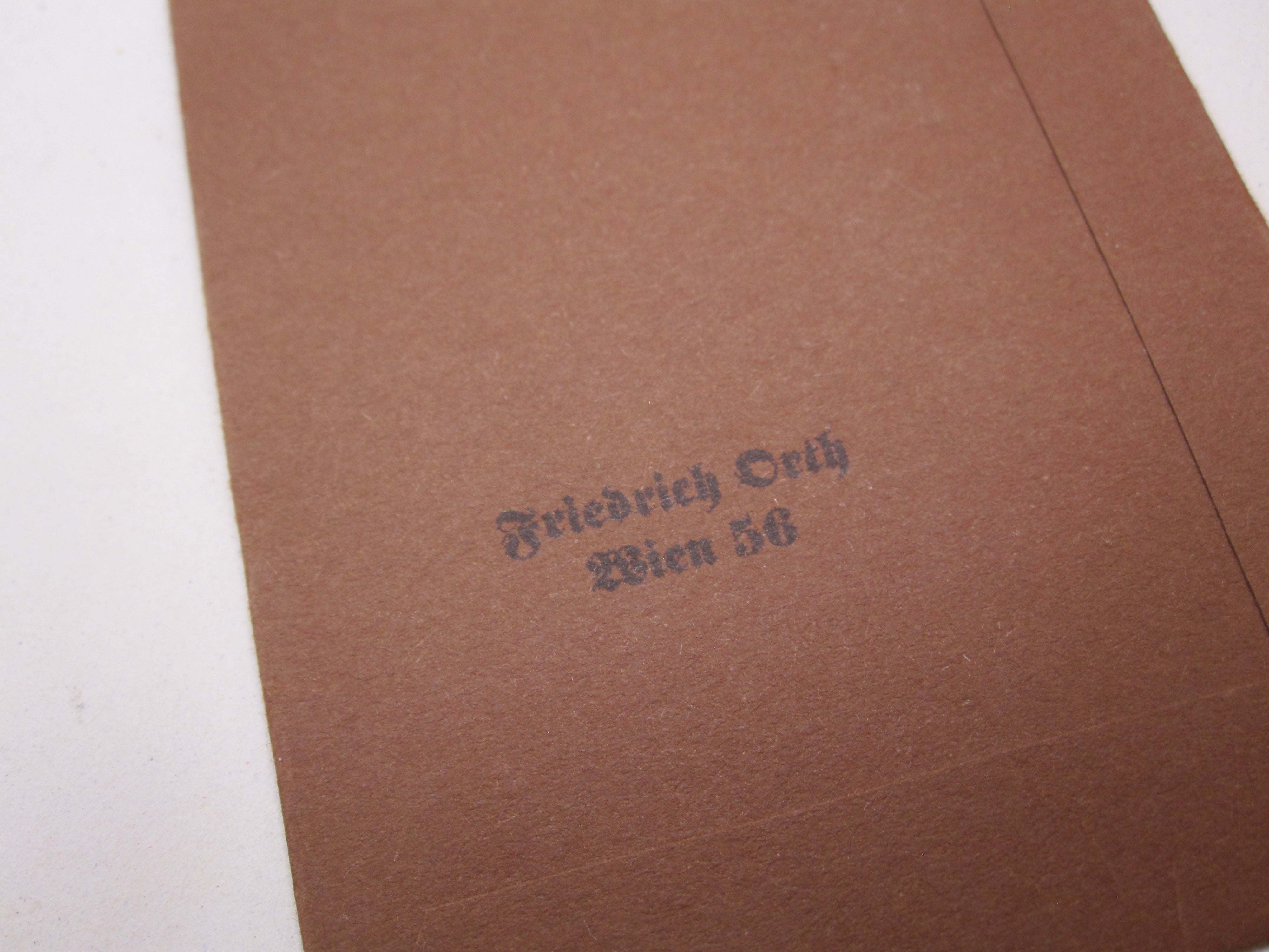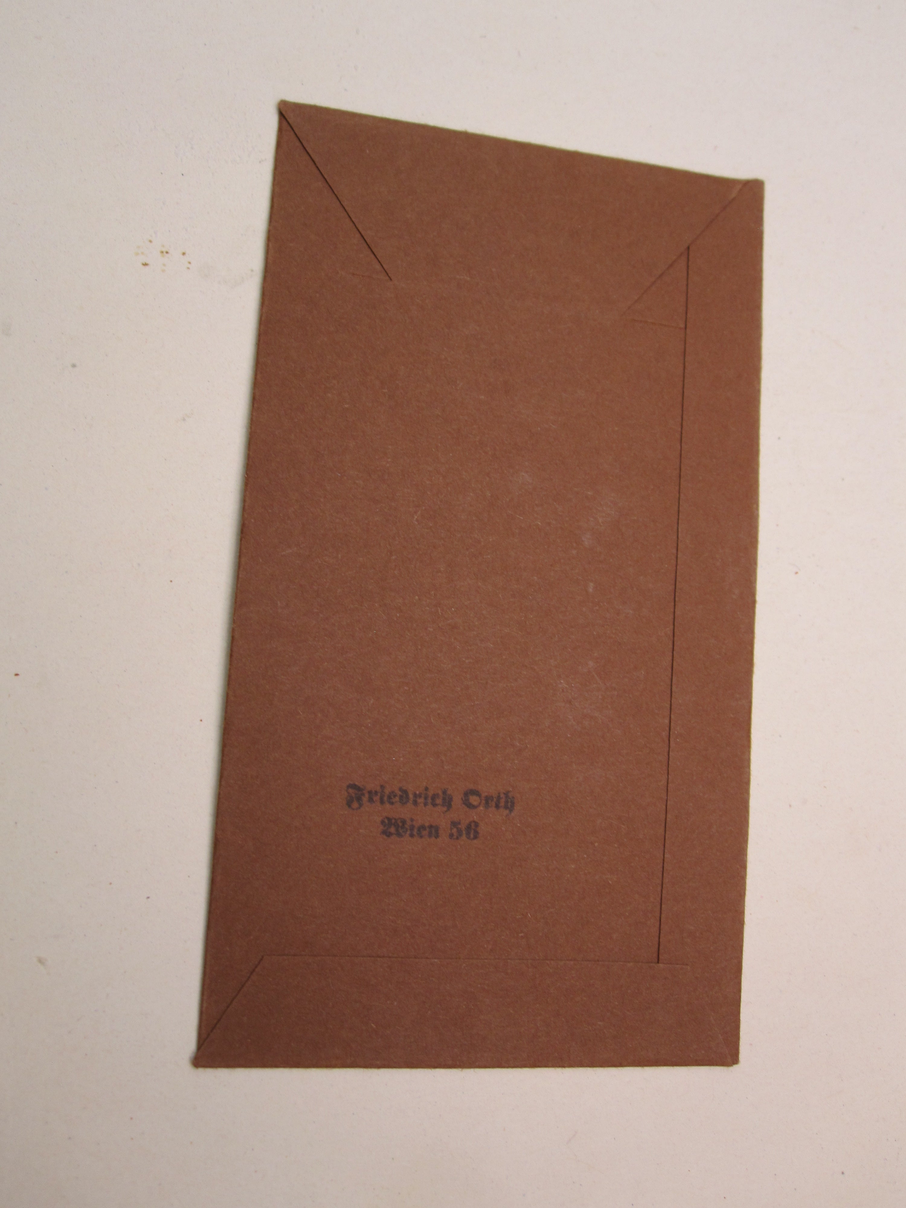 Verleihungstüte mit Herstelleraufdruck: " Friedrich Orth / Wien 56 "