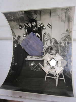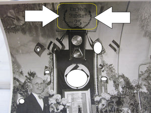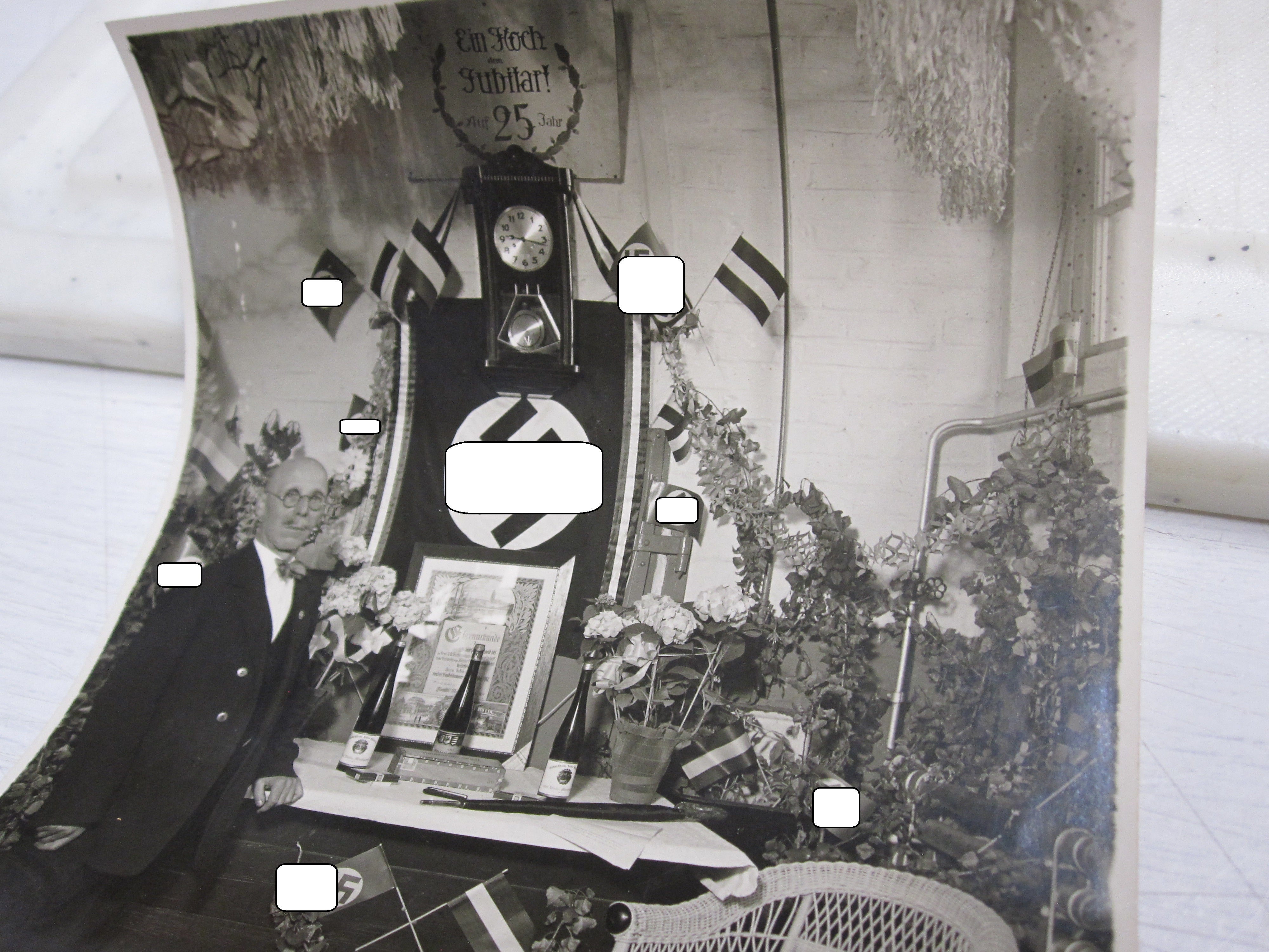 Dabei ein Foto anlässlich seiner 25 jährigen Tätigkeit mit geschmücktem Geschenktisch