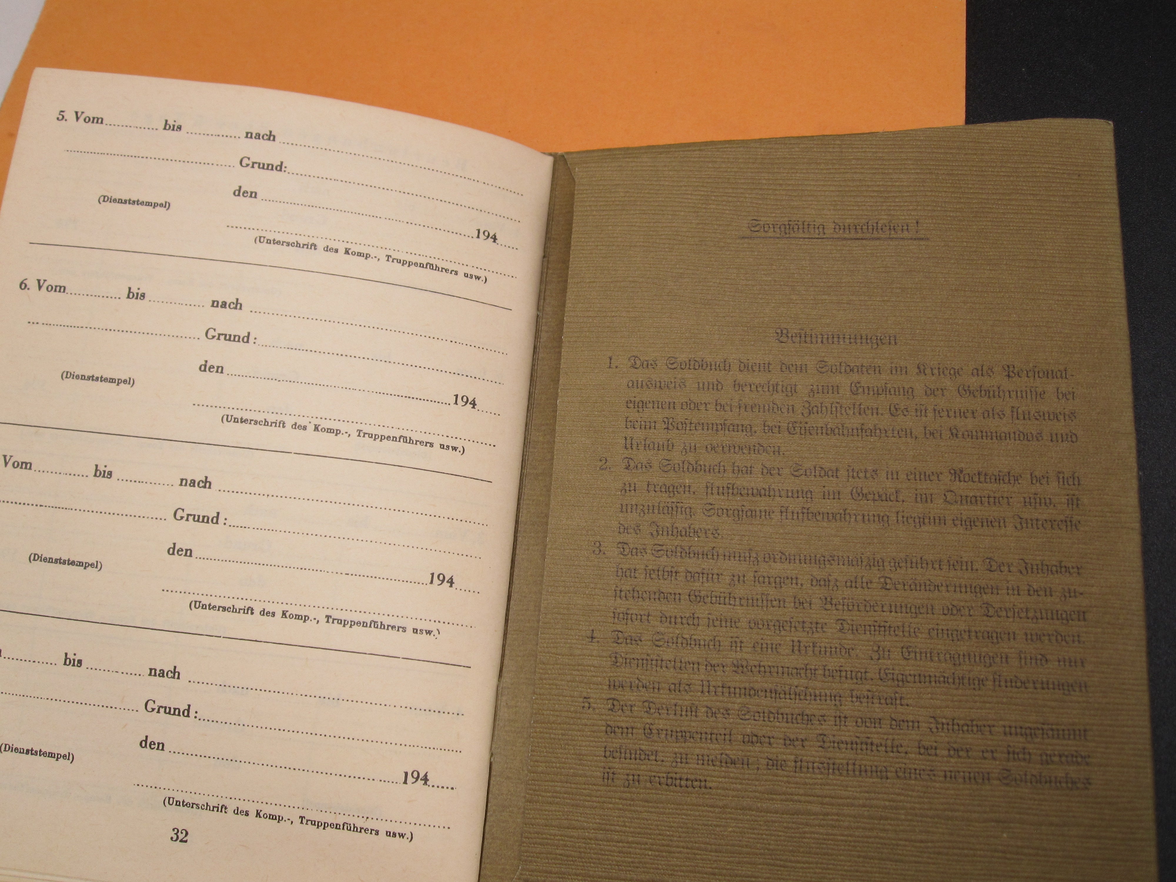 Wehrpass Soldbuch Wehrmacht Dokument Urkunde Besitzzeugnis Militärpapiere Ausweise 2.Weltkrieg Deutschland DEUTSCHER DEUTSCHES Sammlungsauflösung Besitzzeugnis Verleihungsdokumente Orden / Partisanenkampf / Bandenbekämpfung Waffen SS Schutztruppe Verfügungstruppe
